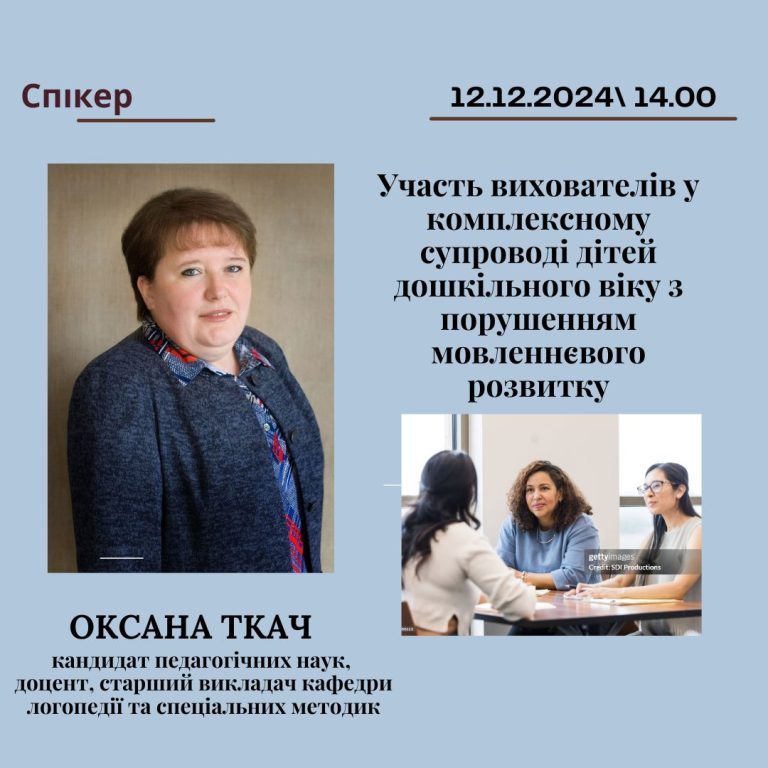 12 грудня 2024 року вихователі ЗДО м. Кам’янець-Подільського мали гарну нагоду набути професійних компетентностей, прослухавши семінар «Участь вихователів у комплексному супроводі дітей дошкільного віку з порушенням мовленнєвого розвитку», що провела кандидатка психологічних наук, доцентка Оксана ТКАЧ. Семінар відбувся в онлайн режимі із застосуванням дистанційної технології Google Mееt. Його учасниками також були викладачі кафедри теорії та методик дошкільної освіти К-ПНУ імені Івана Огієнка.