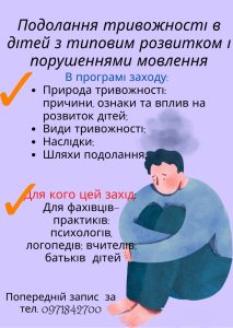 Семінар «Подолання тривожності в дітей з нормотиповим розвитком і порушеннями мовлення» 20-21.05.2023 р.
